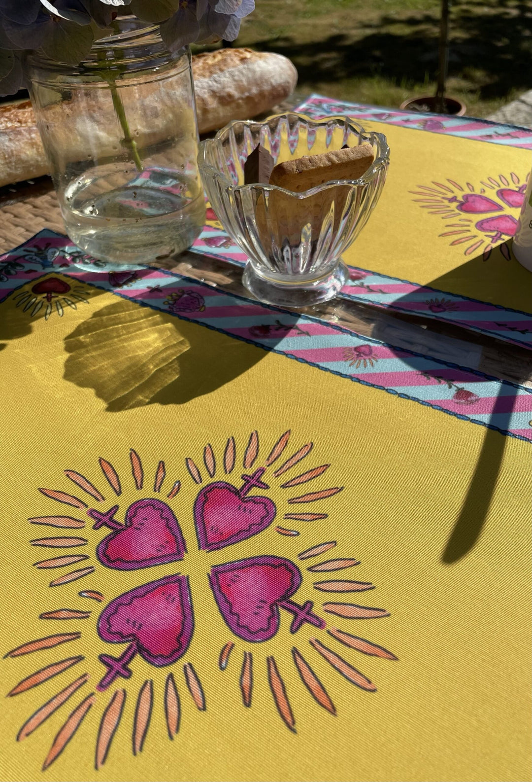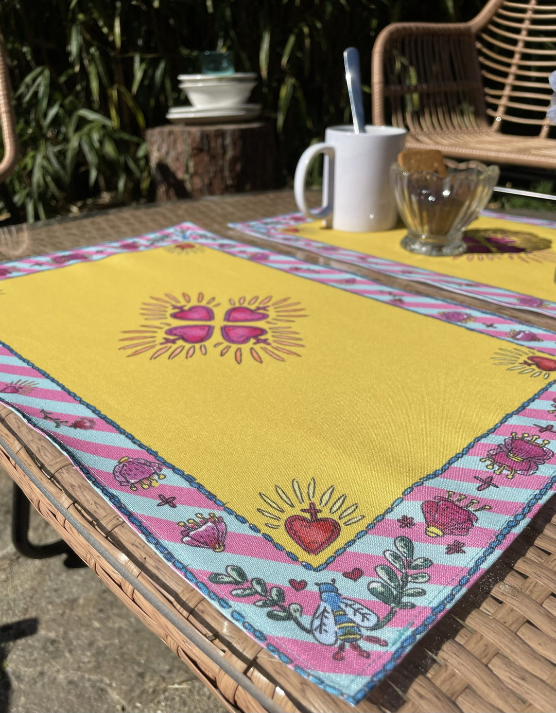 Sets de table - Tissu anti-tâches - Motifs cœur sacré - Fond uni jaune