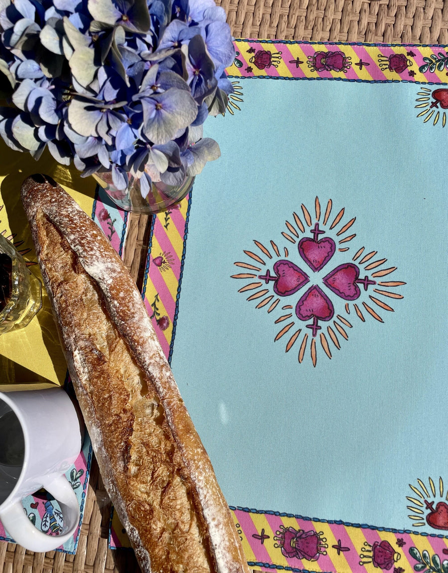 Sets de table - Tissu anti-tâches - Motifs cœur sacré - Fond uni turquoise Sets de table Maison Datcha